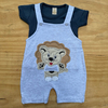 A jardineira curta é produzida em malha canelada e com bordado em feltro de leãozinho, além disso, possui alças com botões de pressão, facilitando no momento de vestir o bebê.